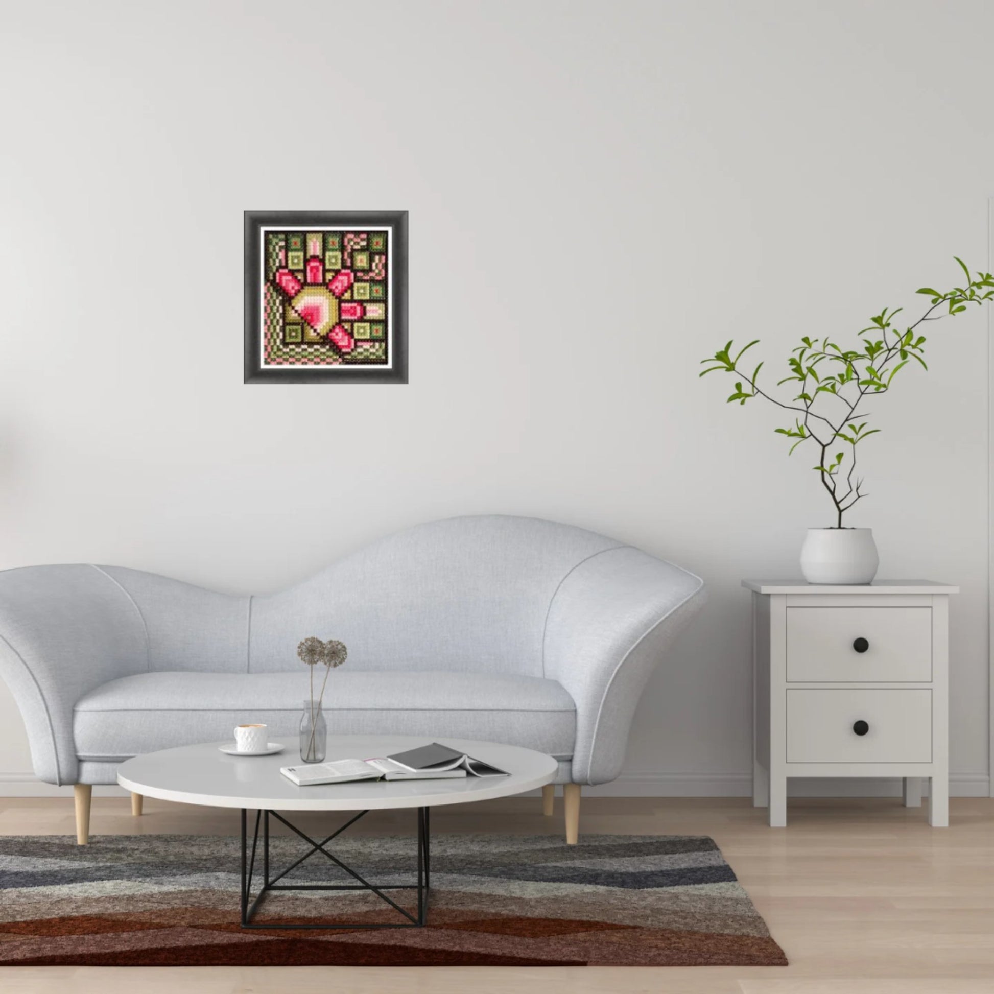 The "Venus" pattern radiates the beauty and dynamism of the spring season. Geometric lines blend seamlessly with the enchanting idea of nature's rebirth and transformation, creating an artistic narrative that captures the essence of this magical time of year. Whether you are an experienced cross-stitch enthusiast or a novice eager to embrace the art of embroidery, this pattern is thoughtfully designed to inspire and ignite your creative spirit.