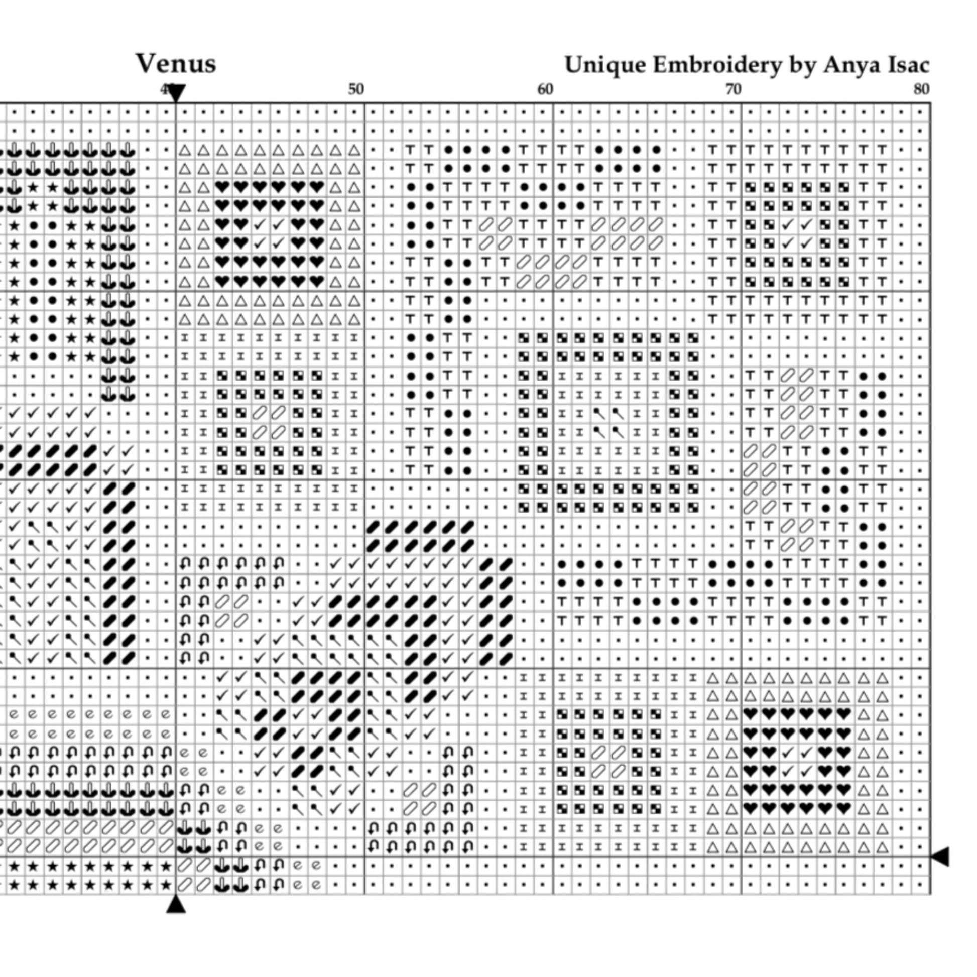 High quality PDF hand embroidery Scheme of Double cross stitch (Bulgarian cross) -Venus- on the base of handmade embroidery Designed & Made by Anya Isac - Unique Embroidery.