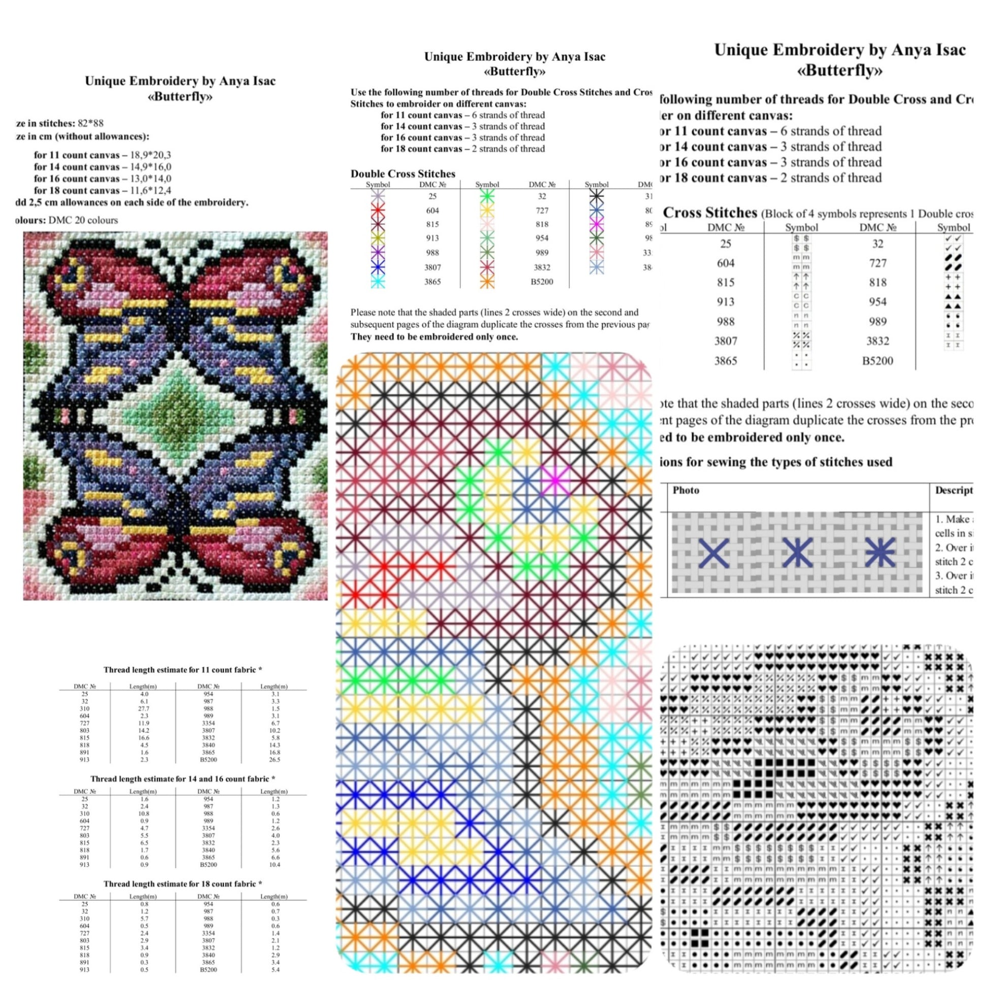High quality Double cross stitch sampler (Bulgarian cross) "Butterfly" on the base of hand embroidery Designed & Made by Anya Isac - Unique Embroidery.